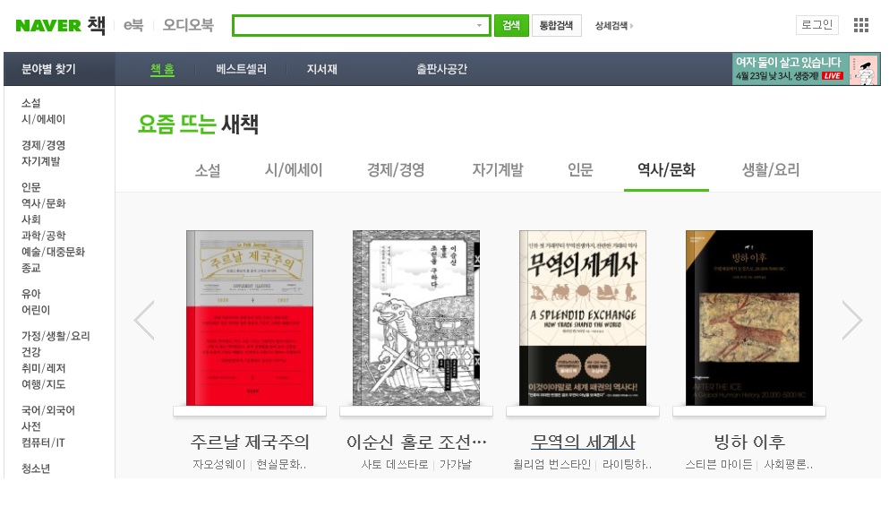 네이버 책판 역사 요즘 뜨는 새책 20190415