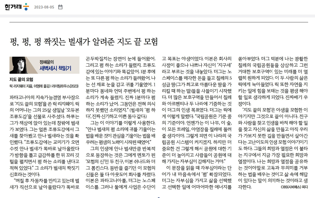 [한겨레] 세벽세시 책읽기 - 지도 끝의 모험