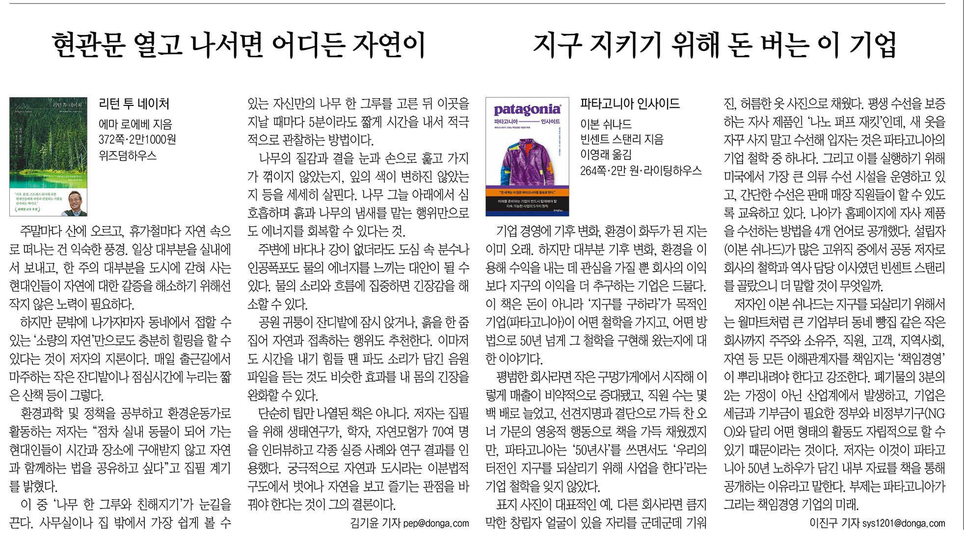 | [동아일보] 지구 지키기 위해 돈 번다는 기업 (0) | 2023.07.17 |