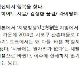 언론 소개 썸네일형 리스트형 [기사 모음] 강호의 도가 땅에 떨어졌다 _ 다빙 소설 [시사인] 강호의 도가 땅에 떨어졌도다(다빙 지음, 최인애 옮김, 라이팅하우스 펴냄)시사IN 편집국 ahnphoto@sisain.co.kr 2017년 04월 08일 토요일 제500호 최근 중국 문학청년들의 새로운 우상으로 등극한 작가 겸 가수인 다빙이 거리에서 노래하며 중국 대륙을 떠돌던 시절에 만났던 사람들의 이야기를 쓴 이른바 ‘강호 삼부작’ 가운데 한 권이다.덩샤오핑의 1가구 1자녀 정책 이후 태어난 ‘바링허우(1980년 이후) 세대’가 주인공들. 모두 실존 인물이라고 한다. 외동으로 곱게 자라나 ‘소황제’로 불리던 바링허우들이, 양극화되고 모순으로 가득한 ‘강호의 도가 땅에 떨어진’ 현대 중국에서 어떻게 살아가고 있는지 엿볼 수 있다.2015년 출간 이후 한 달간 중국 아마존 종합 베스트셀러 1위.. 더보기 고도원의 아침편지 5월 추천도서 2017년 5월 추천도서 천천히 책을 읽는 시간, 나를 위로하고 에너지를 주는 선물이 됩니다. 5월 추천도서와 함께 더욱 화사한 봄날을 느껴보세요. 시인만의 독특한 시각과 아름다운 문장으로 자연과 인간에 대해 깊이있게 담아낸 책 , 저자가 십여 년간 중국 대륙을 유랑하며 채집한 감동의 이야기들을 통해 청춘의 아픔을 이길 희망을 처방해 주는 실화소설집 , 다시 일어서는 힘, 적응하는 힘, 타인을 이해하는 힘, 흔들리지 않는 아이의 힘 등 미래를 생각하는 자녀 교육의 좋은 길잡이가 되어 줄 , 이렇게 세 권입니다. _고도원의 아침편지 사이트에서 더보기 [언론소개 모음] 시골 빈집에서 행복을 찾다 [부산일보] 2016.12.15그래, 정답은 시골이다시골 빈집에서 행복을 찾다/이케다 하야토 생각 1. 기자는 어릴 적 시골에서 자랐다. 10년 남짓. 시골 생활은 지금까지 살아온 세월의 5분의 1 정도밖에 안 되지만, 기자가 간직하는 아름다운 추억의 90%가량은 시골에서 자랐던 그 시기에 멈춰 있다. 그래서일까. 기자에겐 시골은 아직도 돌아가고 싶은 곳으로 머릿속에 깊게 각인돼 있다. 아니, 어쩌면 설렘과 행복의 공간으로 가슴속에 남아있는지 모른다. 생각 2. 도시화로 한때는 모두 떠났던 시골의 빈집이 다시 하나둘 채워지고 있다. 퇴직 후 시골로 귀농하는 사람이 대부분이지만, 오랜 도시 생활에 지쳐 혹은 가족과 더 많은 시간을 보내고 싶어서 빈집을 찾는 경우도 있다. 하지만 사연은 그렇다 하더라도, 이.. 더보기 이전 1 ··· 5 6 7 8 9 10 11 ··· 18 다음