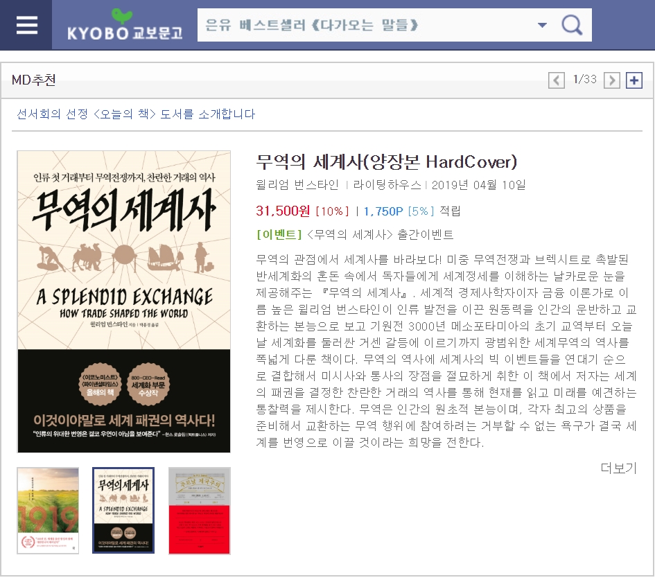 알라딘 역사 분야 md의 선택 2019_0419