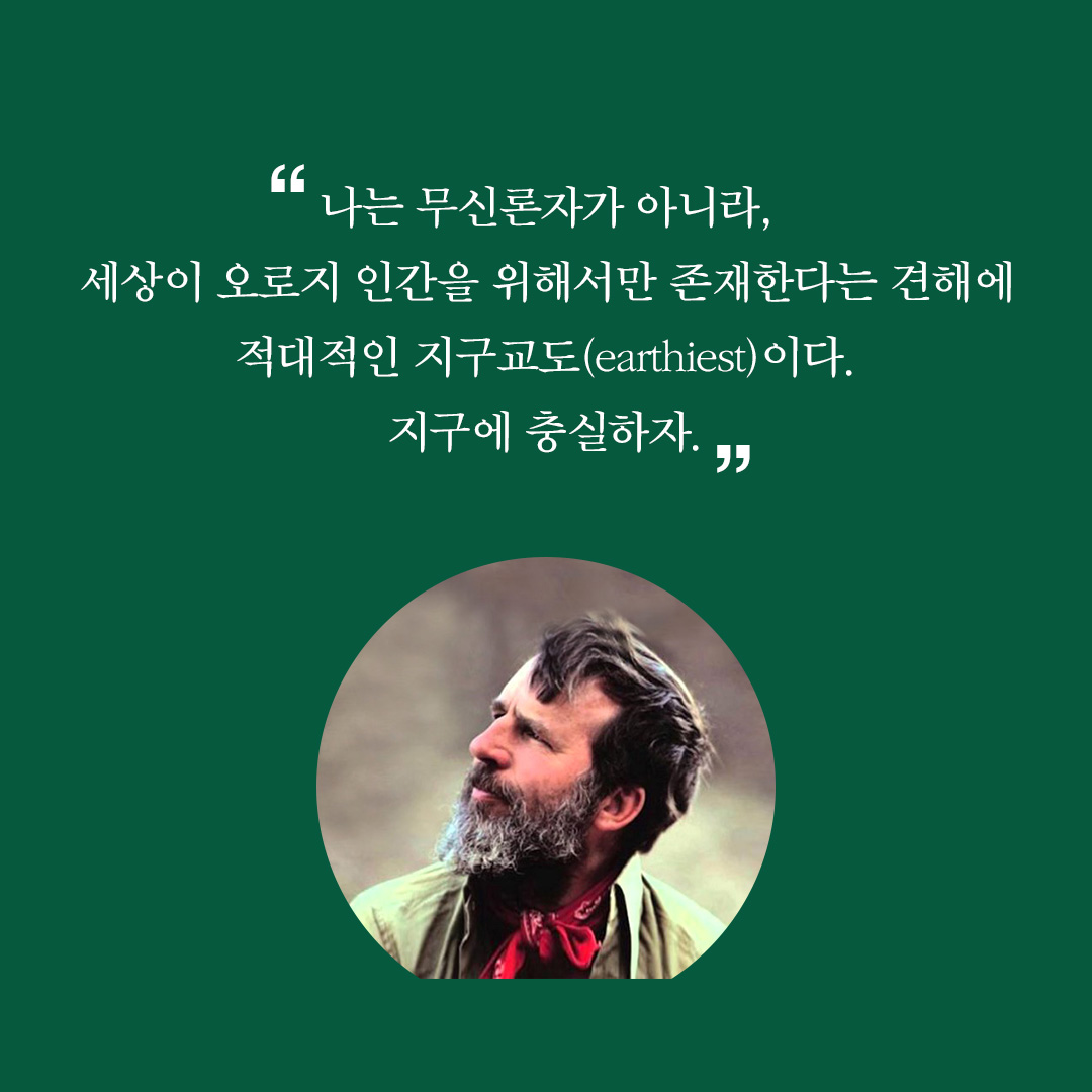 50년 전 이미 문명의 황혼을 예감한 애비의 통찰은 여전히 유효할뿐더러 오히려 시간이 흐를수록 절박하게 다가오고 있다. 그는 『사막의 고독』에서 자신을 ‘세상이 오로지 인간을 위해서만 존재한다는 견해에 적대적인, 지구교도(earthiest)’라고 소개했다. 그는 우리에게 지구에 충성할 것을, 지구를 살리기 위한 행동에 시급히 나설 것을 촉구했다.